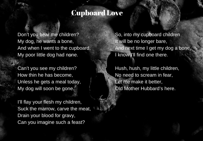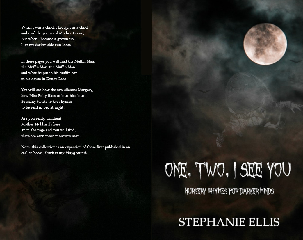 A few years back I rewrote a nursery rhyme, just for fun. That rhyme was a version of The House that Jack Built which I gave a Ripper vibe. It appeared on a defunct website called Readwave and I wrote a few others. These were all well-received. Over a period of time I wrote about 25 more and gathered them with my dark verse in my collection, Dark is my Playground. I always intended to expand on these, presenting a somewhat darker edition of Mother Goose and so I’ve written another batch which allows me to gather old and new together in One, Two, I See You. This collection contains sixty twisted rhymes – although how you make some nursery rhymes darker is beyond me, I mean Three Blind Mice? Well, actually I did it but you get my drift, a lot of nursery rhymes are alreaady pretty dark and often violent.
