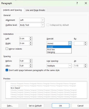 Indenting Paragraphs