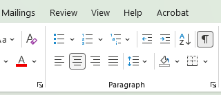 If something doesn’t appear quite right, ie the centring appears a little off, click on the arrow to the right of ‘Paragraph’. It will open up the Paragraph window and you can check that other features, eg left or right indents, are set to 0.