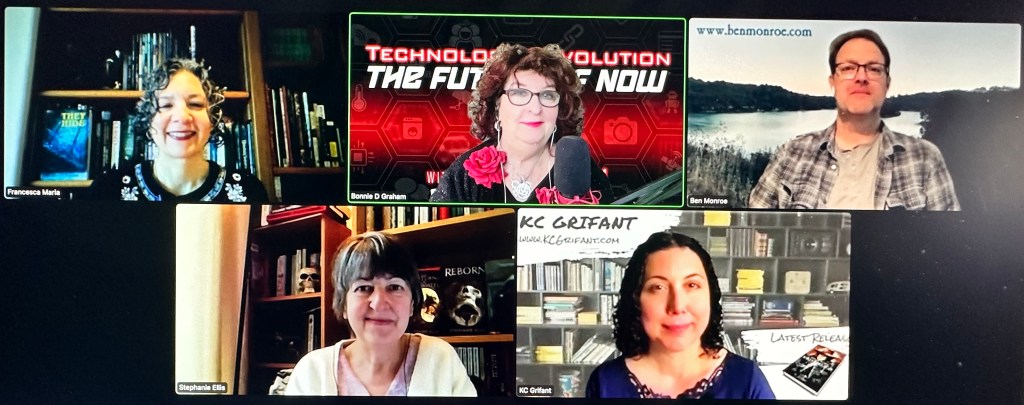 AI has got us all in a panic it seems. Personally, I see it as a wonderful source of stories to mine and use as a warning as it rolls out into our lives. Don’t just talk about AI as an entity in itself. Question who programs, who funds it, who is it behind the scenes manipulating us! Had a great time chatting alongside Bonnie D with fellow authors, Ben Monroe, KC Grifant, Author and Francesca Maria on Voice America.